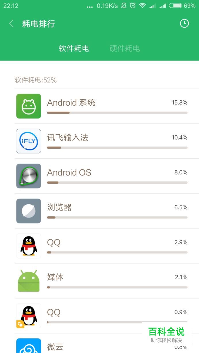 关闭耗电软件 我们可以在软件耗电排行榜里面看到每一款软件耗电的情况。如果我们觉得小米手机的电量不够用的话,我们可以把耗电量最多的几款软件关闭掉,这样子就可以让我们的手机使用的持久一些。