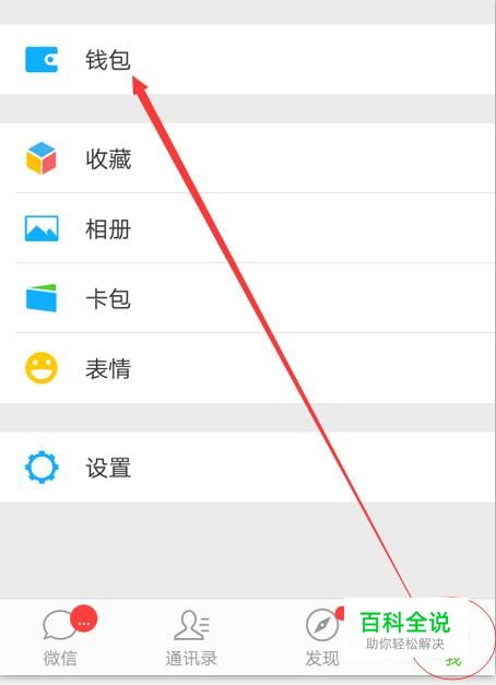打开手机上的微信主界面,点击右下角的“我”,看到“钱包”,点击进去。