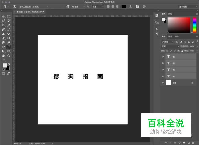 进入PS新建画布,然后输入文字,一个字一个图层。