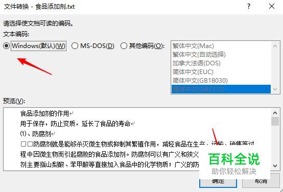 点击windows默认的文本编码格式,点击确定即可。