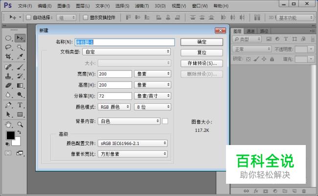 打开ps软件之后,我们新建一个画布(选择文件-新建或者是快捷键Ctrl+N都是可以的),小编就新建了一个200*200的画布给大家做示范。
