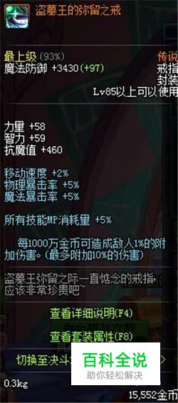 戒指:盗墓王的弥留之戒,可以对敌人造成附加伤害,提高狂战士的战斗力,如图所示。