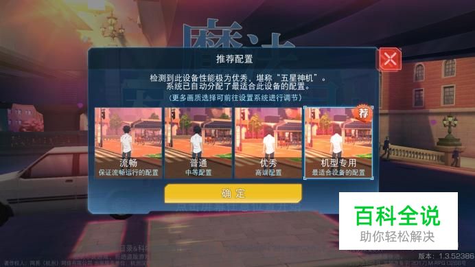 进入游戏主界面,首先需要进行配置选择,建议点选“机型专用”