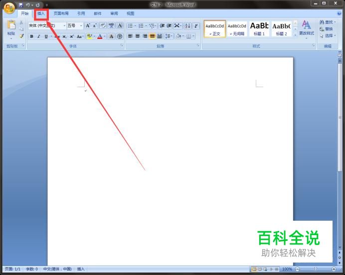 进入Word后,我们根据箭头方向找到插入这个项目。