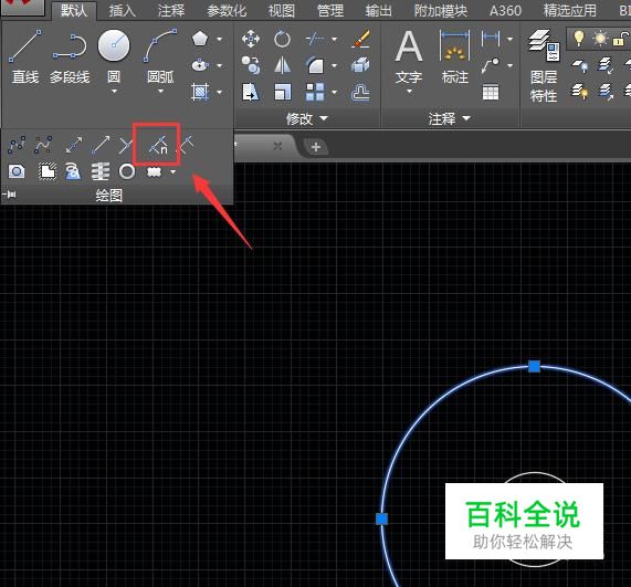 圆弧画好以后,取消点样式的显示,并在工具箱内找到修剪命令,如图所示: