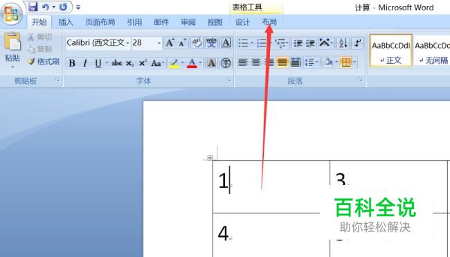 进入Word文档后,单击表格一下,使上方的菜单栏中出现表格工具的选项,在表格工具的菜单栏中找到布局的选项,点击进入。