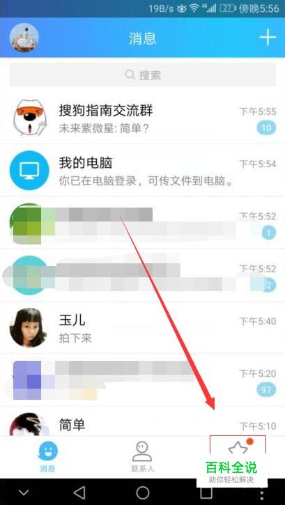 接着在QQ界面,我们点击“动态”,如下图所示。