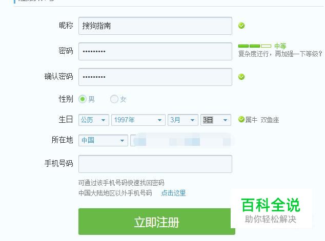 填完除手机号之外的所有信息,点击“立即注册”按钮,如图所示