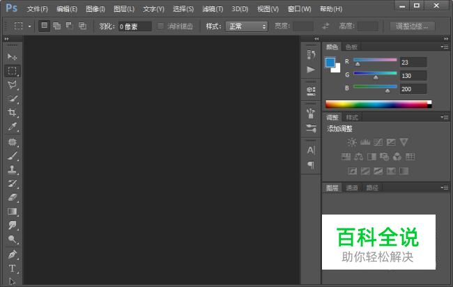 在桌面上双击Photoshop的快捷图标,打开Photoshop这款软件,进入Photoshop的操作界面,如图所示: