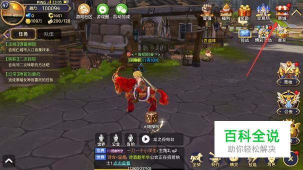 登录游戏后首先点击游戏中的“商城”。