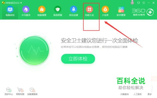 打开360安全卫士,点击“功能大全”