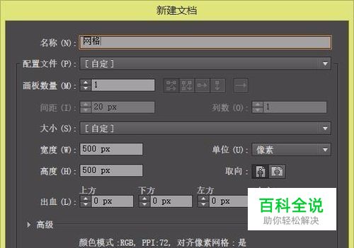 首先创建一个500*500px的画布,如图