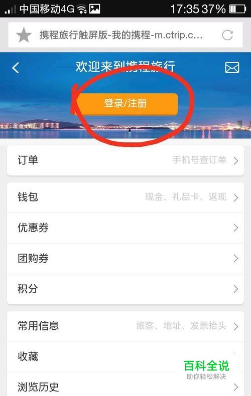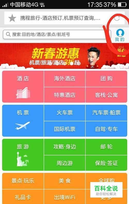 首先登录携程网,然后进入“我的”