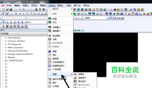 新窗口建立完成后我们将新窗口点击打开,我们再次点击主菜单栏里的工具选项,在工具选项栏里点击报警,然后再点击报警显示选项,将报警显示基本属性设置完毕后,我们报警显示窗口拖拽到新建的窗口上即可