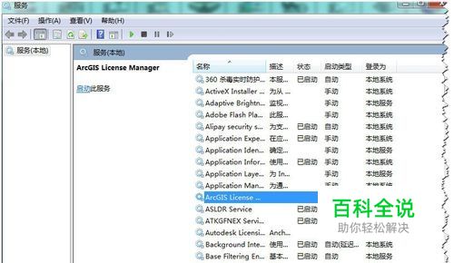 首先,假设电脑已经安装了arcgis软件,现在需要安装erdas软件。将erdas安装好后,进入服务,把arcgis license Manager服务 关闭了并设置为 手动,如图