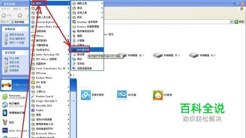 单击“开始”——所有附件——附件——命令提示符,如图所示。