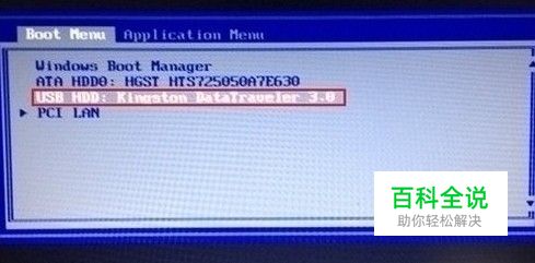 2、按下启动快捷键后系统进入到启动项选择窗口,利用键盘上的上下方向键选择u盘启动,其中USB开头的就是插入的u盘,按下回车键确认,如图所示: