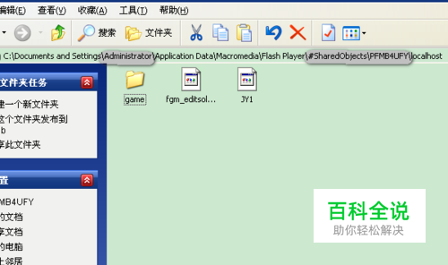先运行游戏,在酒店休息一下后退出游戏。这样做是为了产生存档文件。 进入flash游戏的存档目录。如图所示,其中标记处在不同的电脑中是不一样的。将Jy1这个文件进行复制,粘贴到我的文档中。使用修改器时方便打开文件。