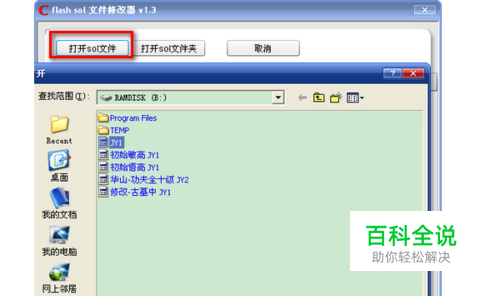 打开修改器,选择“打开sol文件”,选择Jy1文件打开。 在打开之前可以将文件做一个备份,避免修改产生错误,导致存档文件损坏。