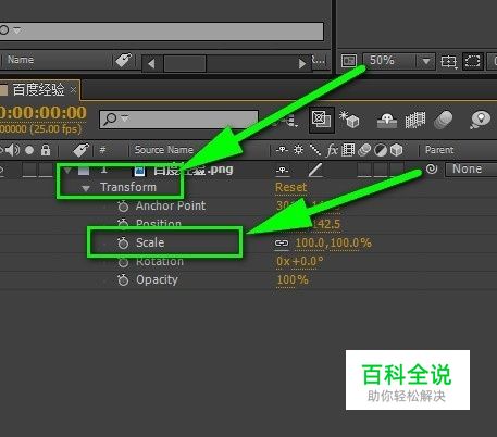 点击scale前方的关键帧小图标开始添加关键帧并且设置缩放比例便可。