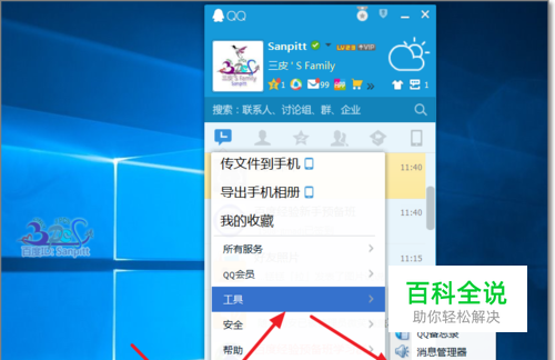 如图,点击QQ面板上的功能菜单,进入QQ的文件助手。