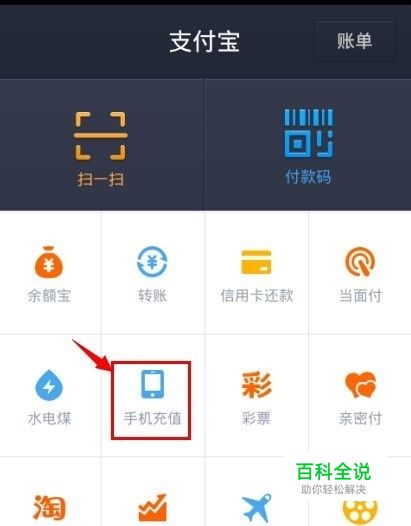 在这个界面中,点击“手机充值”