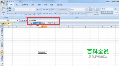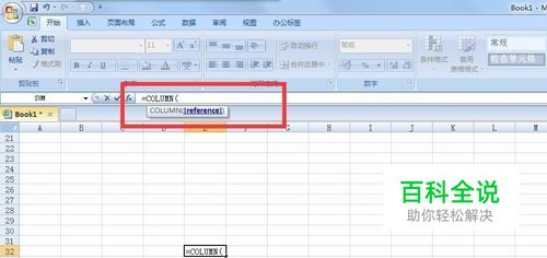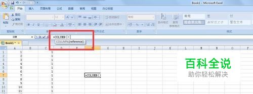 输完后回车即可得到结果,值为1。 公式解释: =COLUMN(A1)表示返回A1单元格所在列,A即为第一列,值为1