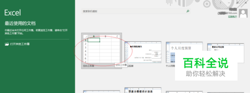 启动Excel 2016电子表格应用软件,如图所示点击界面右侧新建空白工作簿。