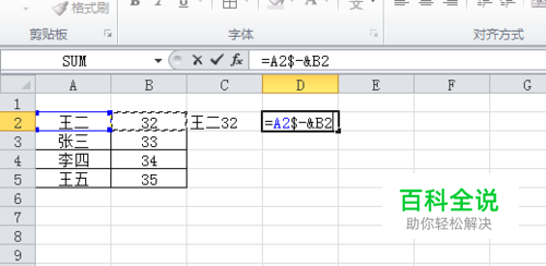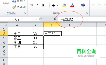最简单的,如图,连接AB两行内容。直接输入= & 。