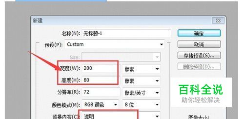点击打开新建按钮之后,我们看到出现一个新建的界面,这时候我们需要对尺寸进行设置,并且最重要的下面要用透明底色,设置好点击确定,如下图所示: