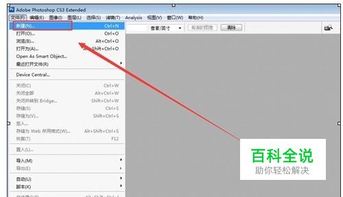 前提条件是自己电脑上面已经成功安装了ps软件,然后点击打开ps软件,打开之后看到我们文件下面的新建按钮点击打开,如下图所示:
