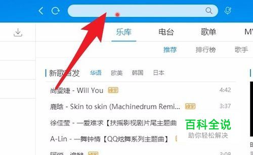 然后在搜索栏中输入自己想要听的歌曲,包括但不限于歌曲名称,歌手名称等等等。