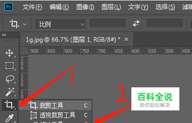 找到“切片工具”(如果左侧工具栏没显示,就要在裁剪处,按住左键不放就会出现很多在此的工具命令,并点选"切片工具“)