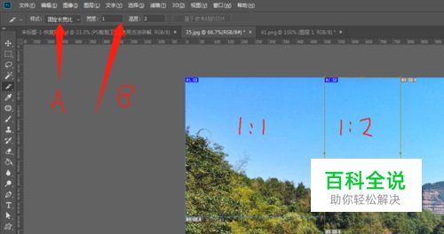 如果想固定比例的话,点菜单栏下方的样式,选择”固定长宽比“此时在长和高各输入一个数值,如图所示,我第一个切片是长和高都输入1的,,第二个切片是长1,高2,可以明显看到,每次在画布上拉选时,他都会按这个比例切片。