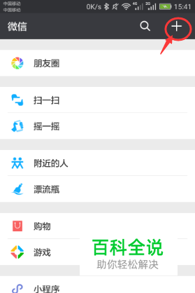 登录自己的微信,进入页面,找到右上角添加位置“+”