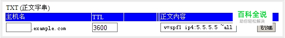 1.从diy.hichina.com处登录域名管理系统;2.在TXT(正文字串)处设置一条TXT记录(假设发信ip为“5.5.5.5”),如下: 如果您不是万网用户,建议咨询您所在域名服务商。