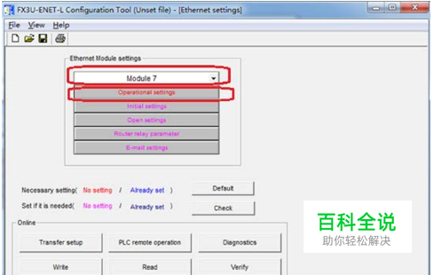 PLC 组态 FX3U-ENET-L模块需要专门的组态工具(FX3U-ENET-L Configuration Tool)来配置。