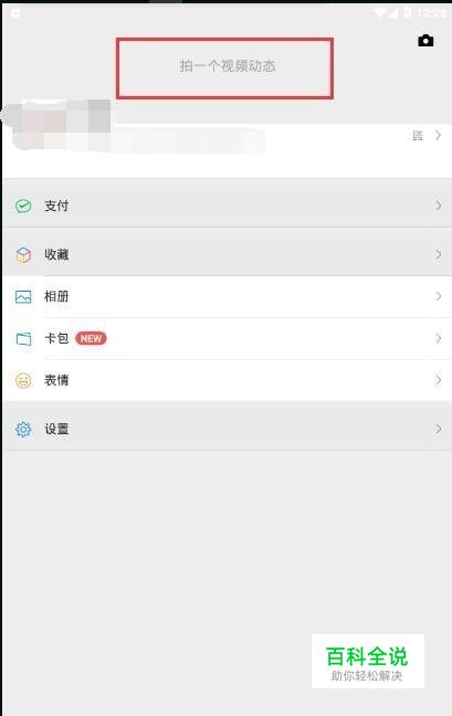 然后我们点击微信最上方显示的拍一个视频动态,如图所示;