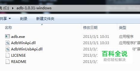 去网上下载adb 1.0.31,我把它放在c盘,打开之后又以下几个文件。