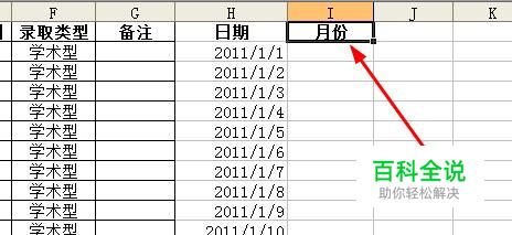 首先我们在日期的右边一列输入一个新的标题“月份”