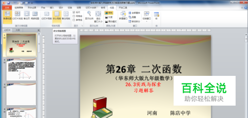 第七步:单击“文件”选项卡,单击“打印”,在“设置”中“幻灯片”下选择讲义的打印版式,幻灯片讲义就显示出来了,在下方单击两个预览方向箭头可以进行翻页预览。