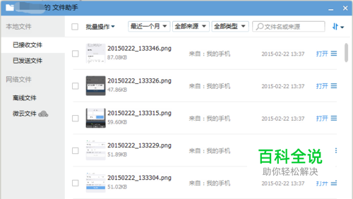 点击【文件助手】选项,即可弹出文件助手窗口,在该窗口可以找到通过该QQ号所有接收及发送的文件,如下图所示。