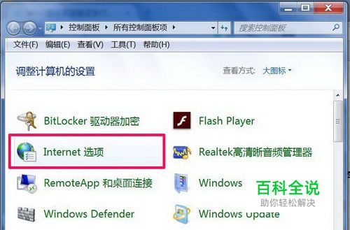 解决方法,先从“开始‘菜单中打开“控制面板”,然后在“控制面板”中找到并打开“Internet 选项”。