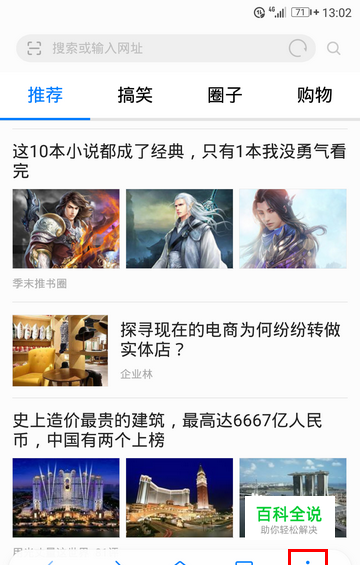 打开浏览器主界面以后,再点击右下角的一排竖点。