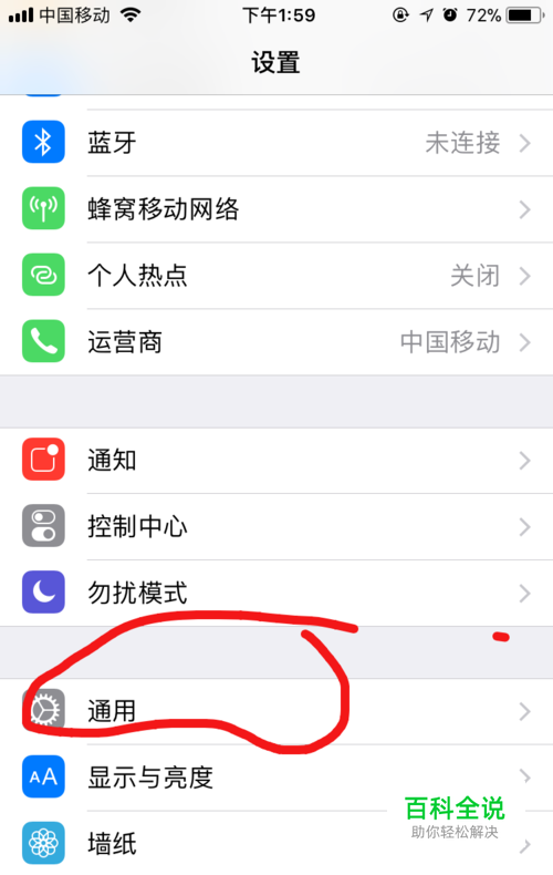 首先我们进入手机设置,找到如图所示的通用。
