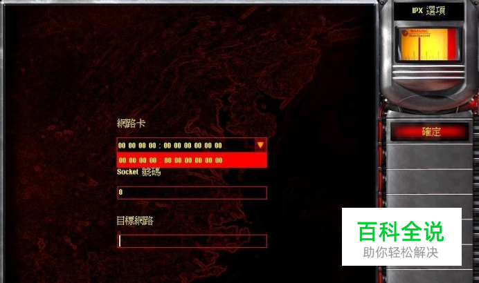 补丁安装后,进入游戏,点击“选项”,再点击“网络”(游戏里面叫“网路”),看到左边有个网路卡,里面显示的全是“0”,点“确定”返回。