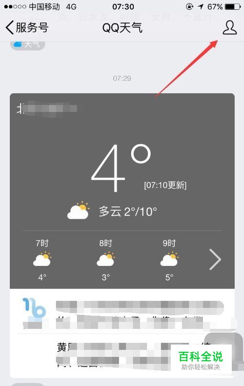 关闭qq天气的方法也比较简单,只要点击进入qq天气,然后点击右上角的“头像”,可以进入qq天气设置,如图所示。