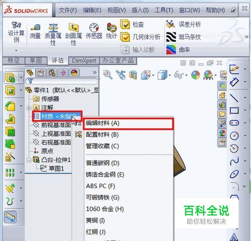 点击左侧“材质<未指定>”,右键,弹出下拉菜单,点击“编辑材料”如图所示