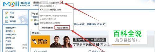 点邮箱旁边的【倒三角形图标】,选择【关联已有邮箱】