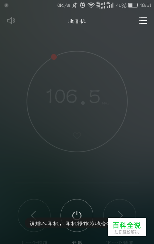 因为手机上的收音机是将耳机作为天线在使用,所以我们在使用收音机前必须要先插入耳机,